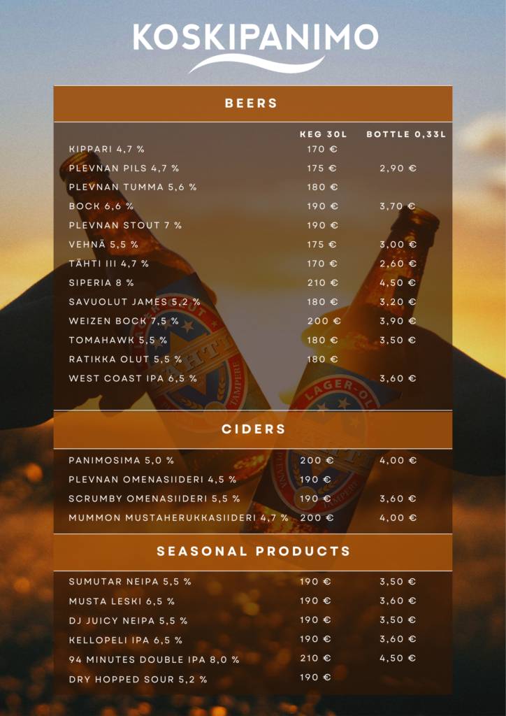 Buy a 30-liter tank or more of Plevna’s fresh beer, you can rent a tap device and carbonic acid from Plevna. Tap beer is a light and ecological alternative for serving drinks at parties. No empty bottles or cans, you just need a little electricity. The tap system also takes care of cooling the beer!
