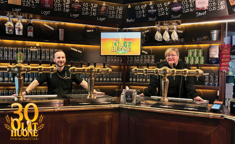 Oluthuone Panimomestari is located in the heart of central Tampere, right next to Tampere Railway Station and just a short walk from Nokia Arena. Among regulars at Plevna, the taproom is commonly known by its nickname “Olkkari.” The doors first opened on October 6, 1996. Before that, the premises were home to Pub Winston and the Leivonpesä café. From the very beginning, Olkkari’s concept has been all about beer. Table service, proper serving temperatures, and a strong focus on beer quality and freshness have been core principles from day one. Today, the bar features 17 taps, offering a wide selection of beers, mead, and ciders—from pale and dark lagers to IPAs, stouts, wheat beers, and changing seasonal specialties. The beers are brewed at Olkkari’s own brewery, Koskipanimo. One of the taproom’s best-known beers is Kippari, brewed exclusively for Olkkari by Koskipanimo since 2006. As part of the anniversary celebrations, a long-awaited favorite is also making a comeback on tap: Mörkö Imperial IPA. Koskipanimo’s products are also available for takeaway daily until 9 PM. In addition to beer, the taproom offers a selection of whiskies, wines, and cocktails, with a full alcohol license. During the summer, guests can also enjoy a terrace on the pedestrian street.