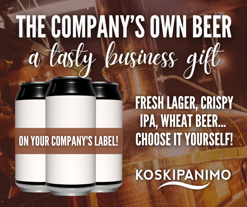 You can buy Koskipanimo’s beer bottles and other merchandise from our beer shop. It opens at the same time as the restaurant and closes at 9 PM. You can also buy your drinks from our online shop at: www.plevna.fi/kauppa