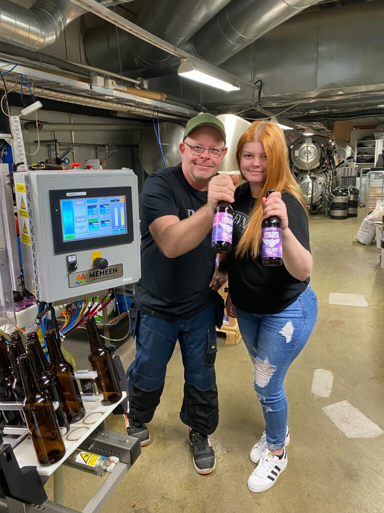 Panimomestari ja yrittäjä Sam Viitaniemi (vasemmalla) ja markkinointivastaava Aino Viitaniemi (oikealla)
